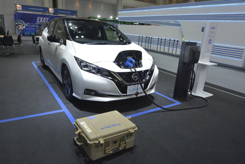 สำหรับในงานมอเตอร์ เอ็กซ์โป 2022 นิสสัน ประเทศไทย เน้นนำรถ NISSAN LEAF เน้นโชว์ระบบโรงไฟฟ้าเสมือนที่จับมือร่วมกันกับการไฟฟ้าฝ่ายผลิต (กฟผ) โดบเป็นการร่วมมือกันศึกษาการจ่ายไฟฟ้าจากจากแบตเตอรี่ของรถยนต์นิสสันลีฟ (Nissan LEAF) เข้าสู่ระบบไฟฟ้า เพื่อเป็นแหล่งพลังงานไฟฟ้าสำรอง โดยรถยนต์นิสสันลีฟเป็นรถยนต์พลังงานไฟฟ้า 100% รองรับเทคโนโลยีการชาร์จไฟฟ้าแบบสองทิศทาง (Bi-directional Charging) คือ นอกจากชาร์จไฟฟ้าให้แก่รถยนต์ไฟฟ้า ยังสามารถจ่ายไฟฟ้าจากแบตเตอรี่รถยนต์ไฟฟ้าสู่ระบบโครงข่ายไฟฟ้าของ กฟผ. ผ่านเครื่องอัดประจุไฟฟ้าแบบสองทิศทางสำหรับบ้านเครื่องแรกของโลก รุ่น Quasar จากแบรนด์ Wallbox ซึ่งเป็นผู้นำด้านเครื่องชาร์จรถยนต์ไฟฟ้าและระบบบริหารจัดการพลังงานสุดอัจฉริยะระดับโลกที่นำเข้าและให้บริการหลังการขายโดยบริษัท อินโนพาวเวอร์ จำกัด เพื่อศึกษาความเป็นไปได้ในการใช้พลังงานไฟฟ้าจากแบตเตอรี่รถยนต์ไฟฟ้ามาใช้ให้เกิดประโยชน์สูงสุด
