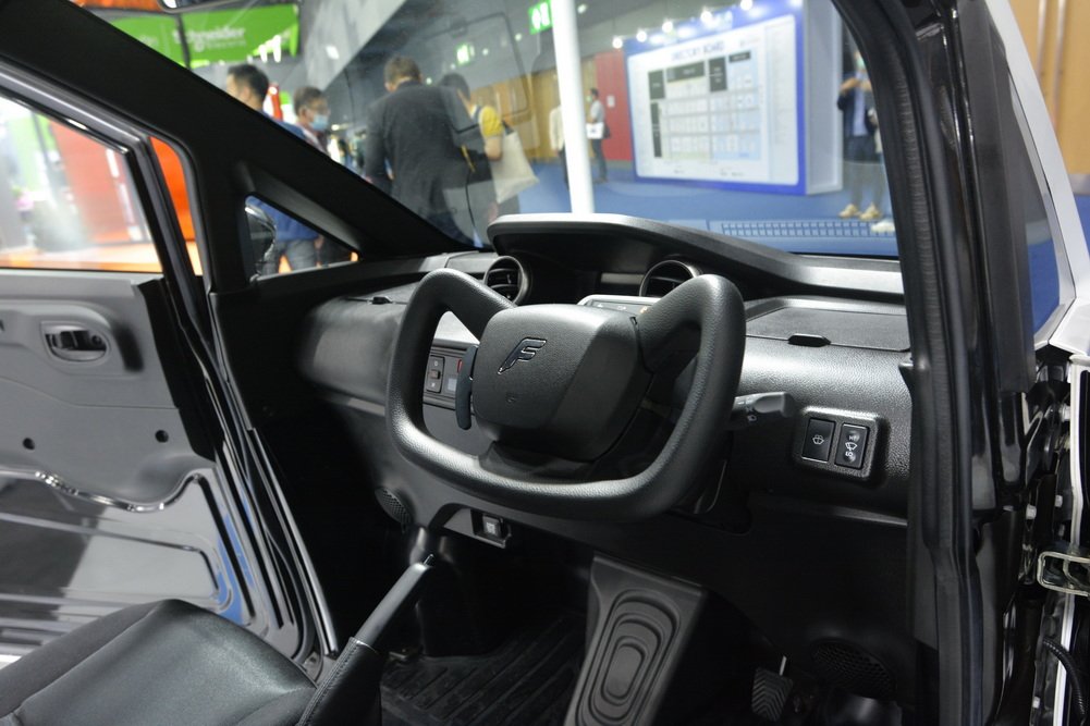 ภายในห้องโดยสาร ออกแบบเน้นความเรียบง่าย มีระบบปรับอากาศ วางมาตรวัดไว้ตรงกลาง พวงมาลัยติดตั้งอยู่ด้านขวา ต่างจากรถยนต์ไฟฟ้าจีนไซส์มินิส่วนใหญ่ที่มักจะอยู่ด้านซ้าย ส่วนที่แปลกคือคันเร่งจะเป็นแป้นอยู่หลังพวงมาลัยควบคุมด้วยมือคล้าย Paddle Shift แป้นเบรกยังวางไว้ที่พื้นใช้เท้าเหยียบปกติ มีระบบ Re-Generation ชาร์จไฟกลับได้เมื่อปล่อยคันเร่ง ซึ่งก็จะมีแรงหน่วงช่วยในการเบรกได้อีกทาง