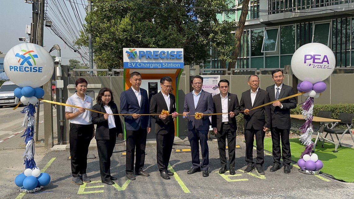 นายอมร แดงโชติ (ที่ 5 จากซ้าย) รองกรรมการผู้จัดการใหญ่ บริษัท พรีไซซ คอร์ปอเรชั่น จำกัด (มหาชน) หรือ PCC ถ่ายภาพร่วมกับนายสมปอง ดำรงอ่องตระกูล (ที่ 4 จากซ้าย) รองผู้ว่าการธุรกิจและการตลาด การไฟฟ้าส่วนภูมิภาค (กฟภ.) เนื่องในโอกาสเปิดสถานีอัดประจุไฟฟ้า PRECISE EV Charging Station ขนาด 2 ช่องจอด ณ บริษัท พรีไซซ ซิสเท็ม แอนด์ โปรเจ็ค จำกัด (บริษัทฯย่อย) โดยบริษัทฯได้เข้าร่วมเป็นเครือข่ายกับ PEA VOLTA Platform ของ กฟภ. ซึ่งมี Application สำหรับผู้ใช้ยานยนต์ไฟฟ้าแบบครบวงจร ใช้งานสะดวก ปลอดภัย และมีเครือข่ายครอบคลุมทั่วประเทศ