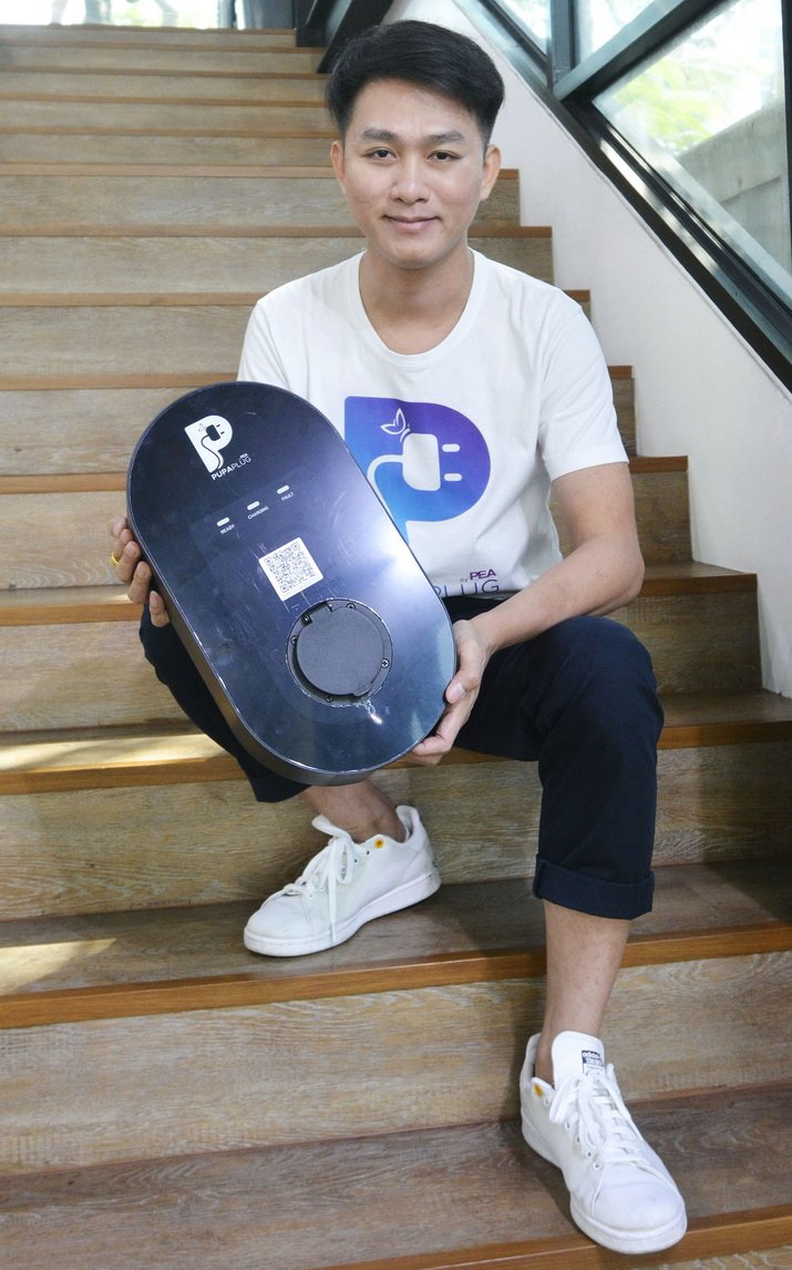 “เวลาชาร์จรถหนึ่งคันต้องใช้ไฟประมาณแอร์ตัวใหญ่ๆ 1 เครื่อง กระแสจะสูง พอเป็นเต้ารับที่เราพัฒนาขึ้น ทำไมถึงปลอดภัย เพราะเราเดินไฟแยกออกมา ใช้เบรกเกอร์หนึ่งตัวต่อเต้ารับหนึ่งตัว สเปคของพาร์ทที่นำมาประกอบได้มาตรฐาน มอก. สามารถชาร์จรถยนต์ไฟฟ้าได้ทั้งคืน ไม่เกิดปัญหาไฟไหม้แน่นอน”