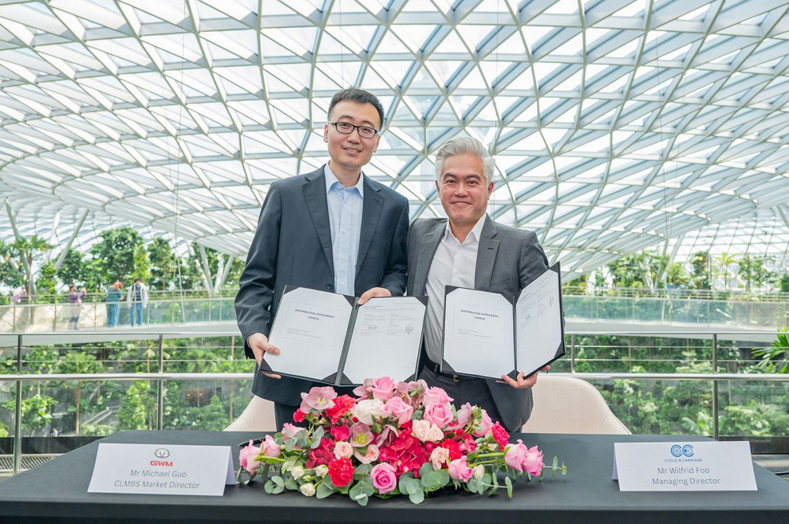 ในฐานะผู้จัดจำหน่ายหลักของแบรนด์ยานยนต์พรีเมียมชั้นนำของโลก Cycle & Carriage คือหนึ่งในกลุ่มบริษัทผู้จัดจำหน่ายชั้นนำในสิงคโปร์ ที่มีประสบการณ์และคร่ำหวอดด้านเครือข่ายและการจัดจำหน่ายในตลาดระดับภูมิภาคอย่างมาเลเซีย GWM และ C&C มีเป้าหมายที่จะแนะนำยานยนต์ไฟฟ้าหลากหลายรุ่นภายใต้แบรนด์ ORA สู่ตลาดสิงคโปร์ภายในปี 2566 ยกระดับประสบการณ์การขับขี่ที่มีความอัจฉริยะยิ่งกว่า ยั่งยืน และเป็นมิตรกับสิ่งแวดล้อมมากขึ้น