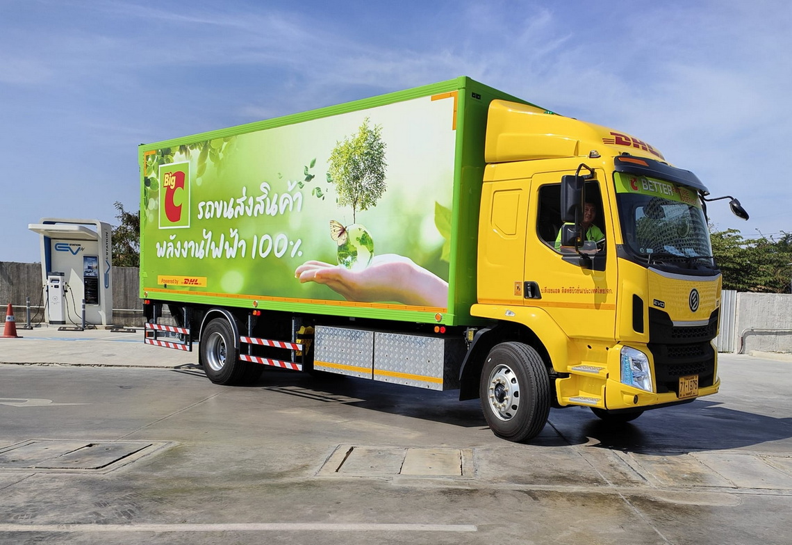 รถขนส่งของ DHL ที่เค้าโปรโมทใช้รถของไทยอีวี