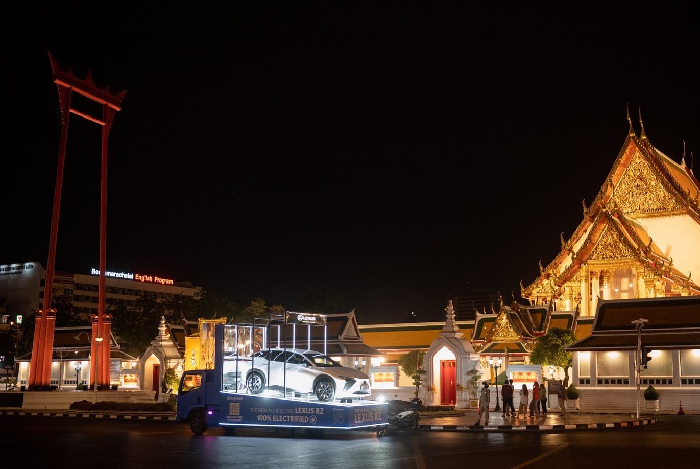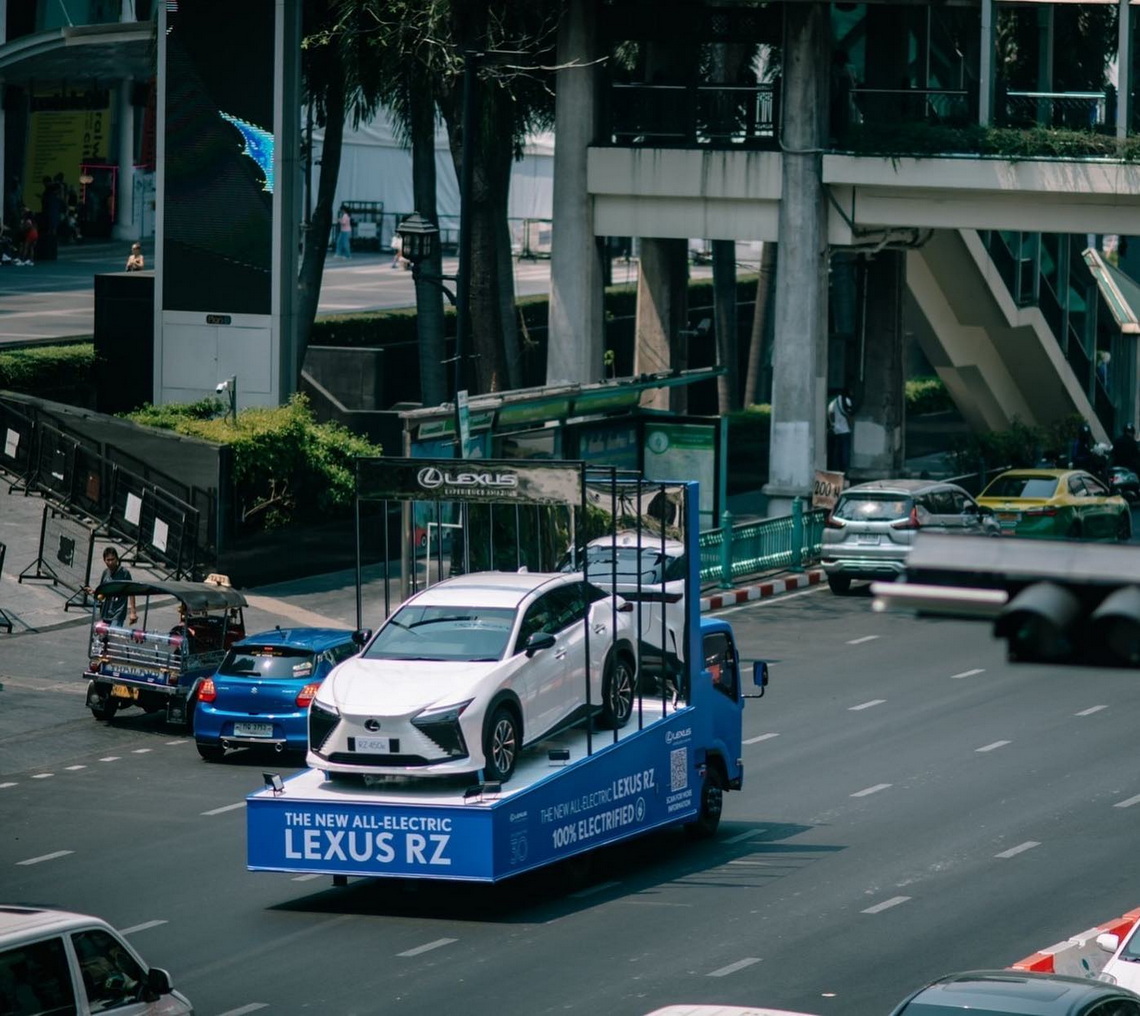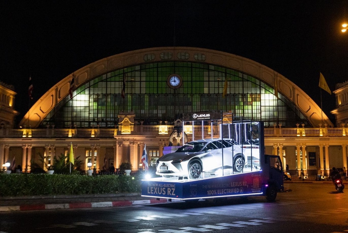 แคมเปญการตลาด Lexus RZ Mobile Showcase ที่ยกรถ Lexus RZ 450e ขึ้นรถโมบายอวดโฉมไปทั่วกรุงเทพฯ ทั้งกลางวันและกลางคืน จัดขึ้นระหว่างวันที่ 7-9 เมษายน 2566 ที่ผ่านมา ประเดิมจุดแรกที่ Central World และไปปิดท้ายที่ The Crystal เอกมัย-รามอินทรา