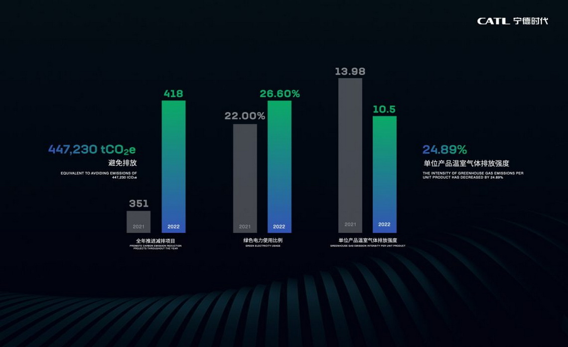 ขณะเดียวกัน ซีเอทีแอลได้ผลักดันโครงการประหยัดพลังงานกว่า 400 โครงการในปี 2565 ซึ่งสามารถหลีกเลี่ยงการปล่อยคาร์บอนรวม 450,000 ตัน และเพิ่มสัดส่วนการใช้ไฟฟ้าสีเขียวสู่ระดับ 26.60% ทั้งนี้ การสร้างสรรค์นวัตกรรมทางเทคโนโลยีและการสั่งสมประสบการณ์อย่างต่อเนื่องไม่เพียงผลักดันให้ซีเอทีแอลมีความสามารถในการแข่งขันด้านความเป็นกลางทางคาร์บอนทั้งในประเทศและต่างประเทศเท่านั้น แต่ยังเป็นการเติมพลังให้กับการพัฒนาอุตสาหกรรมอย่างมีคุณภาพสูงอีกด้วย