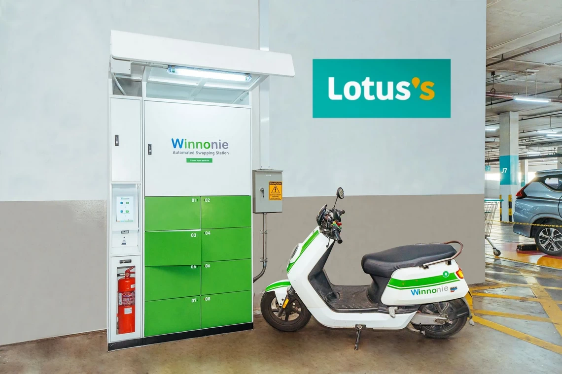 ล่าสุด “โลตัส” ได้ร่วมมือกับ H SEM และ Winnonie ผู้ให้บริการสถานีสับเปลี่ยนแบตเตอรี่มอเตอร์ไซค์ไฟฟ้า เปิดบริการสถานีเปลี่ยนแบตเตอรี่อัจฉริยะ (Battery Swapping Station) ในสาขานำร่อง โลตัสไฮเปอร์มาร์เก็ต และโลตัส โก เฟรช 15 แห่ง รองรับความต้องการผู้ใช้รถมอเตอร์ไซค์ไฟฟ้า อำนวยความสะดวกให้ผู้บริโภคให้สามารถเข้าถึงสถานีชาร์จแบตเตอรี่ได้อย่างครอบคลุมมากยิ่งขึ้น อีกทั้งยังประหยัดเวลา ไม่ต้องรอชาร์จแบตเตอรี่จนเต็ม ผู้ใช้บริการสามารถนำแบตเตอรี่มาเปลี่ยนและใช้งานได้ทันที ปลอดภัย เพื่อการขับขี่ที่ไม่สะดุด และเป็นการสนับสนุนการใช้พลังงานสะอาด ช่วยรักษ์โลกอีก