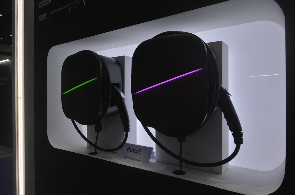 ส่วนแรกคือเครื่องชาร์จ “Dotori” เป็น AC Smart Charger ขนาด 7 กิโลวัตต์ สำหรับติดตั้งตามบ้าน เป็นเครื่องชาร์จอีวีเทคโนโลยีเกาหลี สามารถชาร์จรถยนต์ไฟฟ้าได้ทุกรุ่นทุกยี่ห้อ โดยมีปลั๊กมาตรฐานของทุกประเทศให้เลือกใช้ ทั้งมาตรฐานของไทย จีน ญี่ปุ่น และยุโรป ทำให้เครื่องชาร์จรองรับรถยนต์ไฟฟ้าได้ทุกแบรนด์ ลูกค้าสามารถเลือกสเปคของปลั๊กชาร์จได้ทุกรูปแบบ ไม่ว่าจะเป็น Type 1 Type2 หรืออื่น ๆ