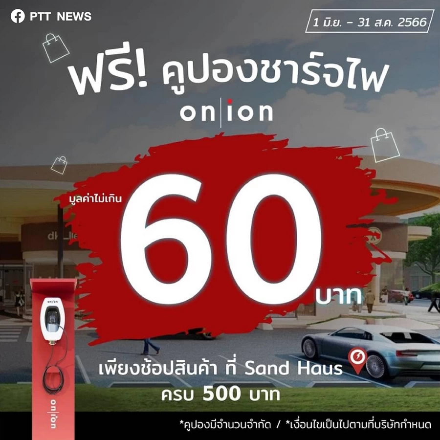 นอกจากนี้ ยังมอบสิทธิพิเศษสำหรับวันเปิดตัววันแรก “6.6.66” เป็นส่วนลดค่าบริการชาร์จ EV พิเศษเพียง 6 บาทต่อหน่วยสำหรับ DC fast charger ในวันที่ 6 มิถุนายน 2566 วันเดียวเท่านั้น! (จากค่าบริการปกติ 9.5 บาทต่อหน่วย) เพิ่มเติมได้ที่ Call Center: 02-017-0022 หรือ Line: @onionev