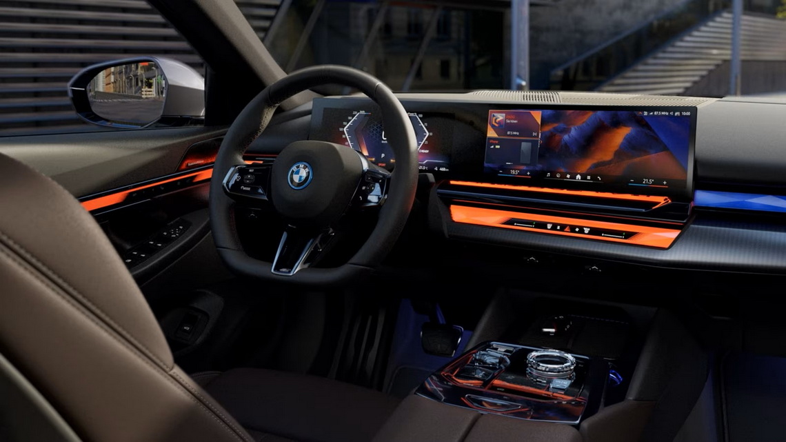 นอกจากนี้ ภายในห้องโดยสารของ 5-Series ใหม่ ยังมีการเพิ่มความล้ำตามยุคสมัยด้วยการติดตั้งแถบไฟ Interaction Bar บริเวณแผงแดชบอร์ดด้านหน้าและแผงด้านข้างประตู ซึ่งจะปรับโทนสีตามโหมดการขับขี่ และธีมการแสดงผลของหน้าจอ BMW Curved Display