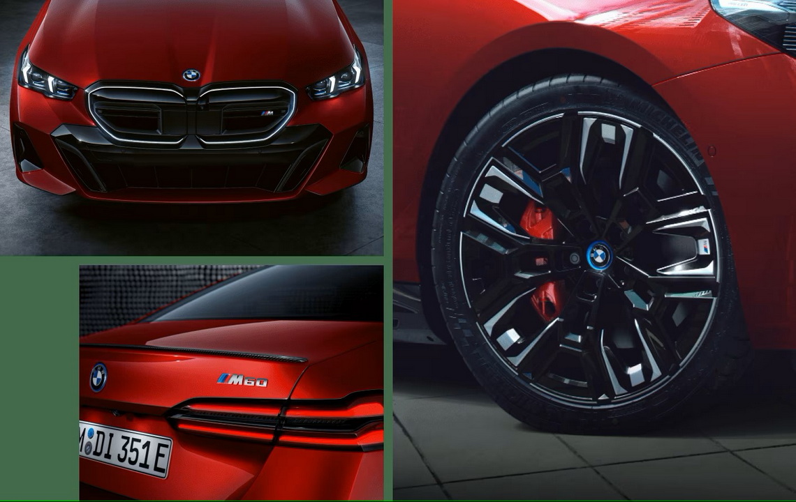 รถไฟฟ้าล้วน BMW i5 ใช้คำว่า ALL-ELECTRIC EXECUTIVE มี 2 รุ่นย่อย คือ BMW i5 eDrive40 กับ BMW i5 M60 xDrive ดีไซน์ตัวรถได้รับการออกแบบให้ดูเอ็กซคลูซีพตามแบบฉบับของบีเอ็ม ความเปลี่ยนแปลงที่เห็นได้ชัดคือมือจับประตูแบบฝังเรียบ มีเครื่องหมายเลข '5' ที่เสา C ไฟหน้าแบบชั้นเดียว รวมทั้งการออกแบบล้อ ตราสัญลักษณ์ และติดตั้งกรอบกระจังหน้าแบบเรืองแสง Illuminated Grille ตามสไตล์รถยนต์ไฟฟ้า BMW รุ่นใหม่ๆ