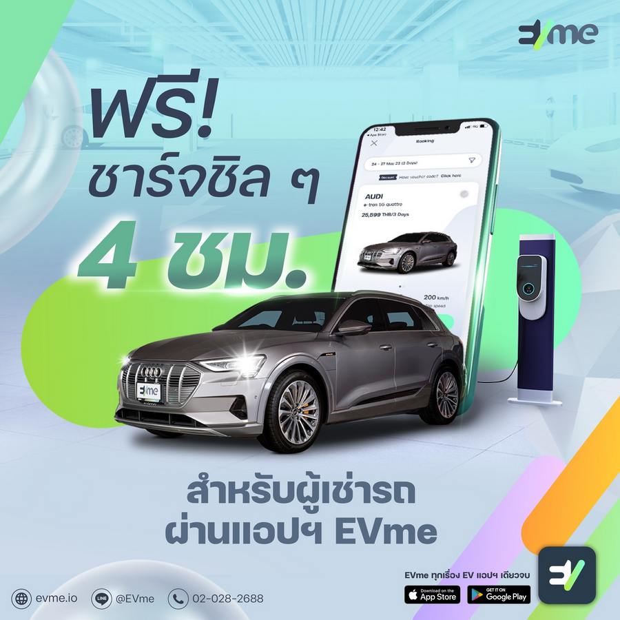 1.ฟรี! ชาร์จชิล ๆ 4 ชม. สำหรับผู้เช่ารถผ่านแอปฯ EVme