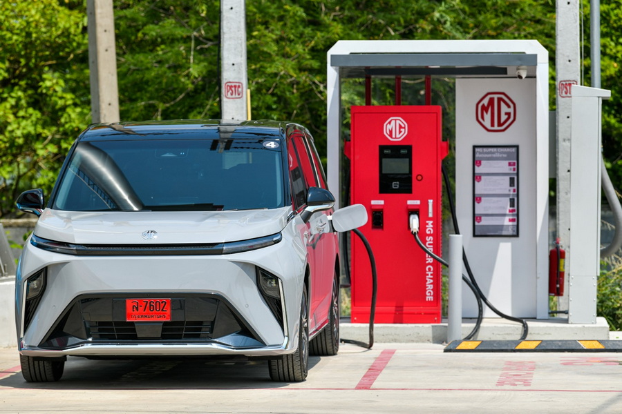 ล่าสุดกับการเปิดน่านน้ำใหม่ครั้งแรกของประเทศไทยกับ NEW MG MAXUS 9 รถลักชัวรี่ MPV แบบ 7 ที่นั่ง ขุมพลังไฟฟ้า 100% ทำให้ เอ็มจี เป็นแบรนด์ที่มีรถอีวีหลากหลายรูปแบบที่สามารถตอบโจทย์ไลฟ์สไตล์ของคนไทยได้มากที่สุด ซึ่ง ณ ปัจจุบัน เอ็มจีรั้งตำแหน่ง “ผู้นำ” ด้วยยอดจดทะเบียนรถอีวีสะสมกว่า 10,000 คัน ตอกย้ำให้เห็นถึงความจริงจังในการทำตลาดอย่างต่อเนื่อง และการเดินหน้าสร้างความยั่งยืนให้กับระบบนิเวศยานยนต์ไฟฟ้า (EV ECOSYSTEM) ในประเทศไทยให้ครอบคลุมในทุกมิติ ทั้งในเรื่องของการลงทุนติดตั้งสถานีชาร์จไวหรือ MG Super Charge ที่ติดตั้งแล้วกว่า 140 แห่ง ทั่วประเทศ การพัฒนา และการจัดการแบตเตอรี่ ตลอดจนการถ่ายทอดองค์ความรู้เกี่ยวกับอีวีสู่คนรุ่นใหม่ รวมถึงความพร้อมในด้านศูนย์บริการ และบุคลากรที่เชี่ยวชาญการซ่อมรถยนต์ไฟฟ้าอย่างทั่วถึง