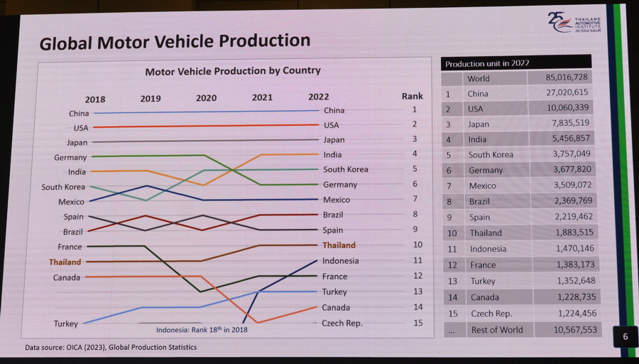 อย่างไรก็ตาม 2 ปี หลังประเทศอินโดนีเซียผลิตรถยนต์เพิ่มขึ้นมาก และพุ่งขึ้นมาอยู่ที่ 11 และมีการขยายตัวของอุตสาหกรรมยานยนต์ดีมากๆ จากปี 2018 อยู่อันดับที่ 18 ใช้เวลาไม่กี่ปีขึ้นมาเป็นที่ 11 ของโลก ผลิตรถได้ประมาณ 1,500,000 คัน จ่อไทยอยู่พอสมควร ตรงนี้เป็นสัญญานให้ผู้ประกอบการไทยต้องเร่งปรับตัว