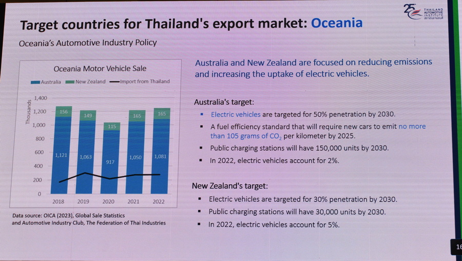 ประเทศออสเตรเลียมีการเติบโตของการนำเข้าแพสเซนเจอร์คาร์ แต่จากไทยส่งออกลดลง ตอนนี้จีนเป็นผู้ส่งออกที่ใหญ่ที่สุดของโลก และนำหน้าในเรื่องของรถอีวี เป็นเทคโนโลยีหลักในการนำตลาดส่งออก จีนโดดเด่นมากในออสเตรเลีย และมีการเติบโตมากๆ
