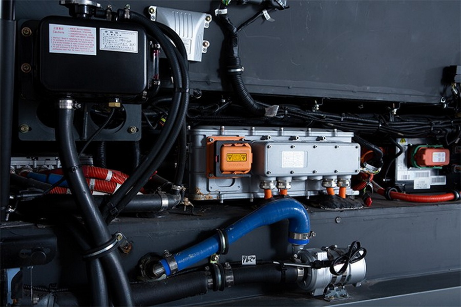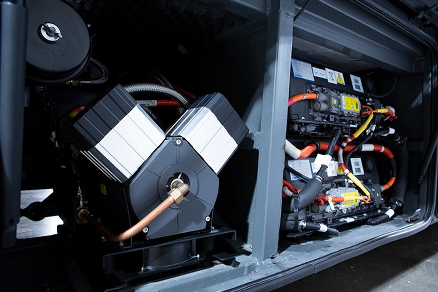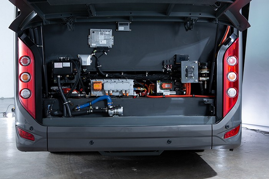 ขุมพลังจากแบตเตอรี่ความจุพลังงาน 90-179.86 kWh ทำงานร่วมกับมอเตอร์ไฟฟ้า กำลังสูงสุด 120 kW แรงบิดสูงสุด 1,300 นิวตันเมตร มอเตอร์ไฟฟ้าจะส่งกำลังสู่เพลาขับโดยตรง โดยสมรรถนะของเพลาขับหน้าอยู่ที่ 4,200 ก.ก. เพลาขับหลัง 7,000 ก.ก.