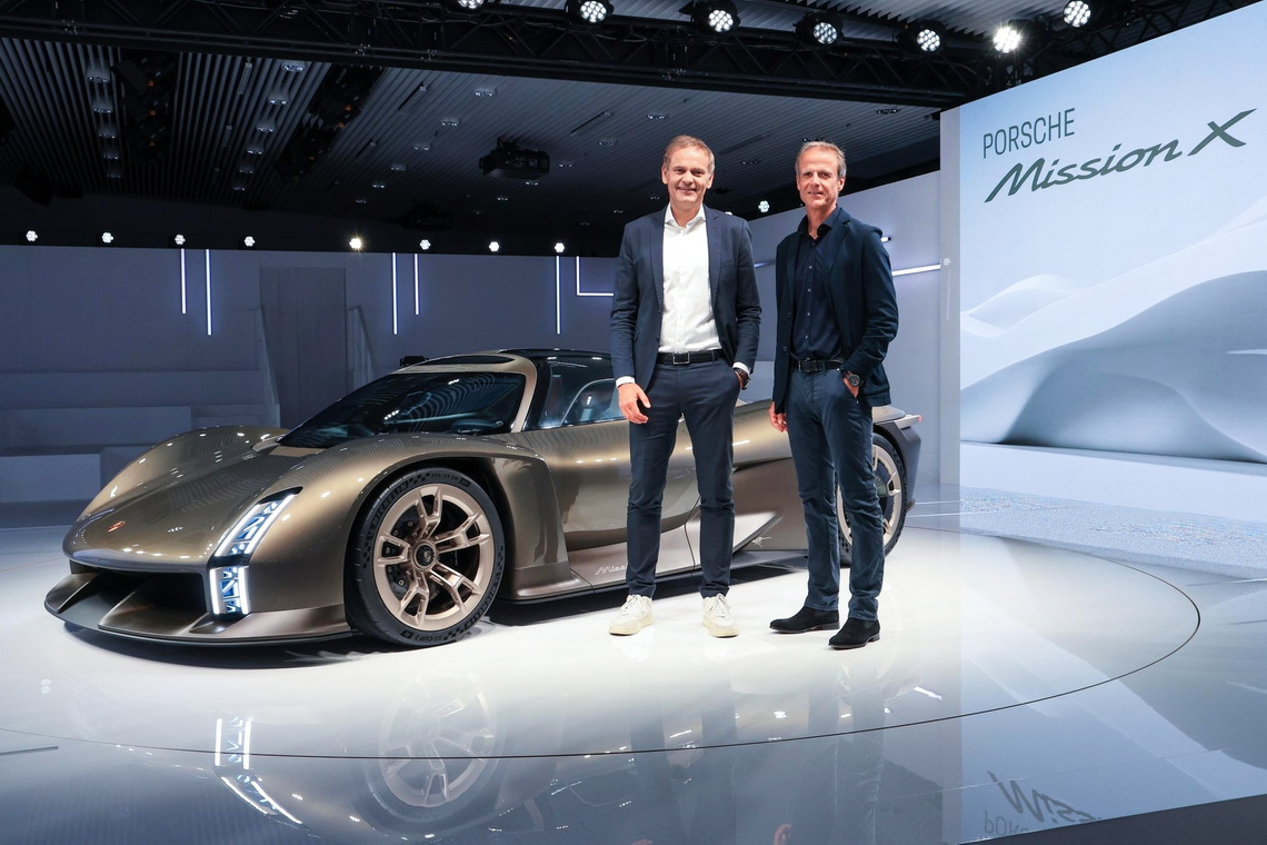 ผู้บริหารของ Porsche AG ถ่ายภาพคู่กับ Porsche Mission X ในวันเปิดตัว