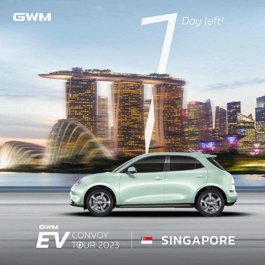 ขบวนคาราวาน GWM EV CONVOY TOUR 2023 เส้นทาง “กรุงเทพฯ-มาเลเซีย-สิงคโปร์” 8 วัน 4,000 กิโลเมตร ยกขบวนรถ ORA Good Cat ไปสัมผัสความหลากหลายทางวัฒนธรรมที่น่าสนใจ สถานที่ท่องเที่ยว Unseen รวมทั้งแลนด์มาร์กในฝันอย่าง Marina Bay Sands หรือ Merlion ซึ่งเป็นจุดหมายปลายทางของทริป ได้ออกเดินทางในวันนี้ วันอังคารที่ 1 สิงหาคม 2566 แล้ว เมื่อเวลา 11.00 น.