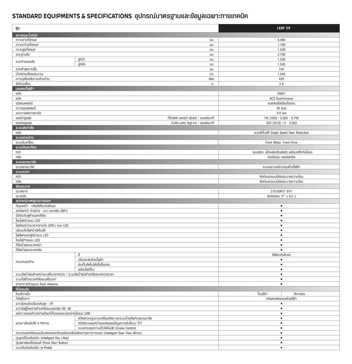 ตัวแบตเตอรี่ลิเธียมไอออนยังเป็นสเป็คเก่า ความจุ 40 kwh เท่าเดิม มอเตอร์ไฟฟ้า AC3 Synchronous (EM57) กำลังสูงสุด 150 แรงม้า แรงบิดสูงสุด 3,283 นิวตันเมตร ระบบขับเคลื่อนล้อหหน้า เกียร์อัตโนมัติ (Single Speed Gear Reduction) อัตราเร่ง 0-100 กม./ชม. ภายใน 7.9 วินาที ความเร็วสูงสุด 144 กม./ชม. ระยะทางวิ่งไกลสุด 311 กม. ต่อการชาร์จเต็มหนึ่งครั้ง (มาตรฐาน NEDC)