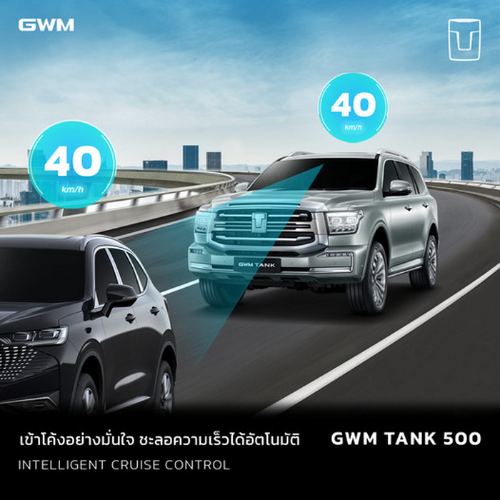 เพื่อประสบการณ์การขับขี่ที่ปลอดภัย All-New GWM Tank 500 มาพร้อมกับเทคโนโลยีช่วยขับขี่อัจฉริยะมากมายหลายอย่าง เริ่มจากระบบควบคุมความเร็วอัตโนมัติแบบแปรผันพร้อมการช่วยเข้าโค้งอัจฉริยะ (Intelligent ACC) ที่สามารถช่วยลดความเหนื่อยล้าของผู้ขับขี่ในขณะขับรถทางไกลเป็นเวลานานได้ เสริมด้วยตัวช่วยการขับขี่สุดล้ำอย่างระบบช่วยเตือนเมื่อรถออกนอกเลน (LDW), ระบบช่วยควบคุมรถให้อยู่ในเลน (LKA), ระบบช่วยรักษาระยะให้อยู่กลางเลน (LCK) ระบบทั้งหมดนี้จะทำให้การขับขี่เต็มไปด้วยความราบรื่น มั่นใจ และปลอดภัยยิ่งขึ้น