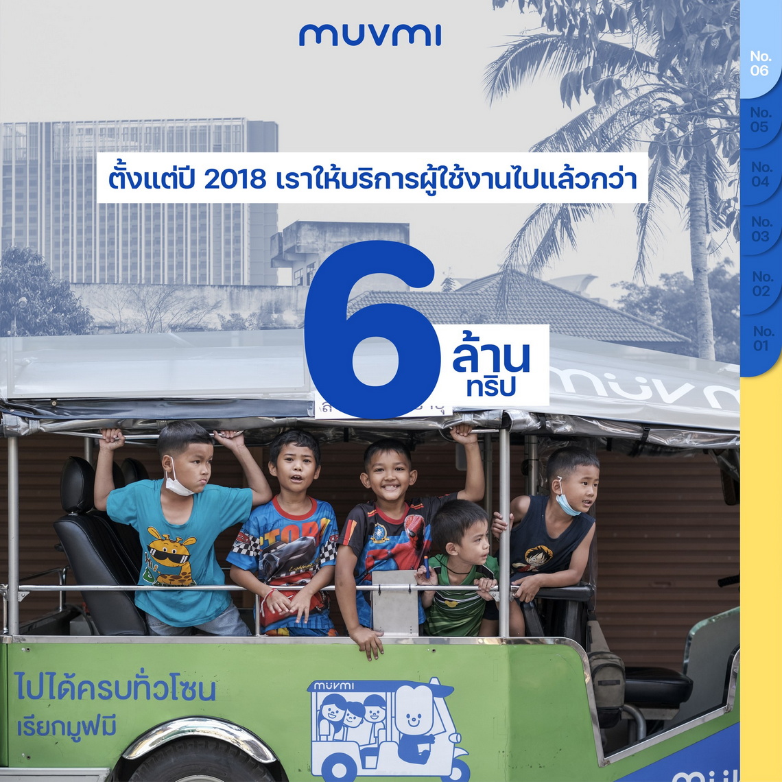 ‘MuvMi’ สตาร์ทอัพ EV สัญชาติไทยผู้ให้บริการรถตุ๊กตุ๊กไฟฟ้า แบบ Ridesharing เจ้าแรกในไทย เติบโตไม่หยุด ล่าสุดเพิ่มจำนวนรถตุ๊กตุ๊กอีวีวิ่งให้บริการกว่า 500 คัน เผยยอดผู้ใช้งานมากกว่า 6,000,000 ครั้ง เตรียมเพิ่ม “รถมากกว่า 3 ล้อ” ให้บริการฉลองก้าวสู่ปีที่ 6 นับตั้งแต่เปิดตัวมาเมื่อปี 2018