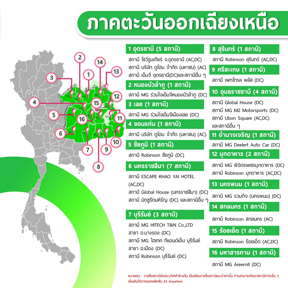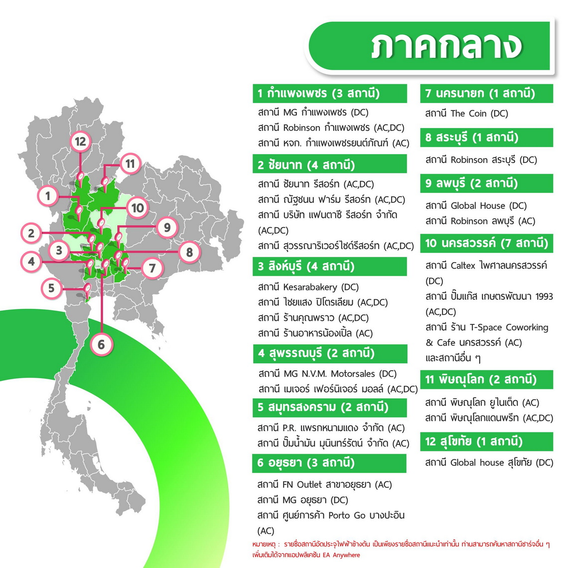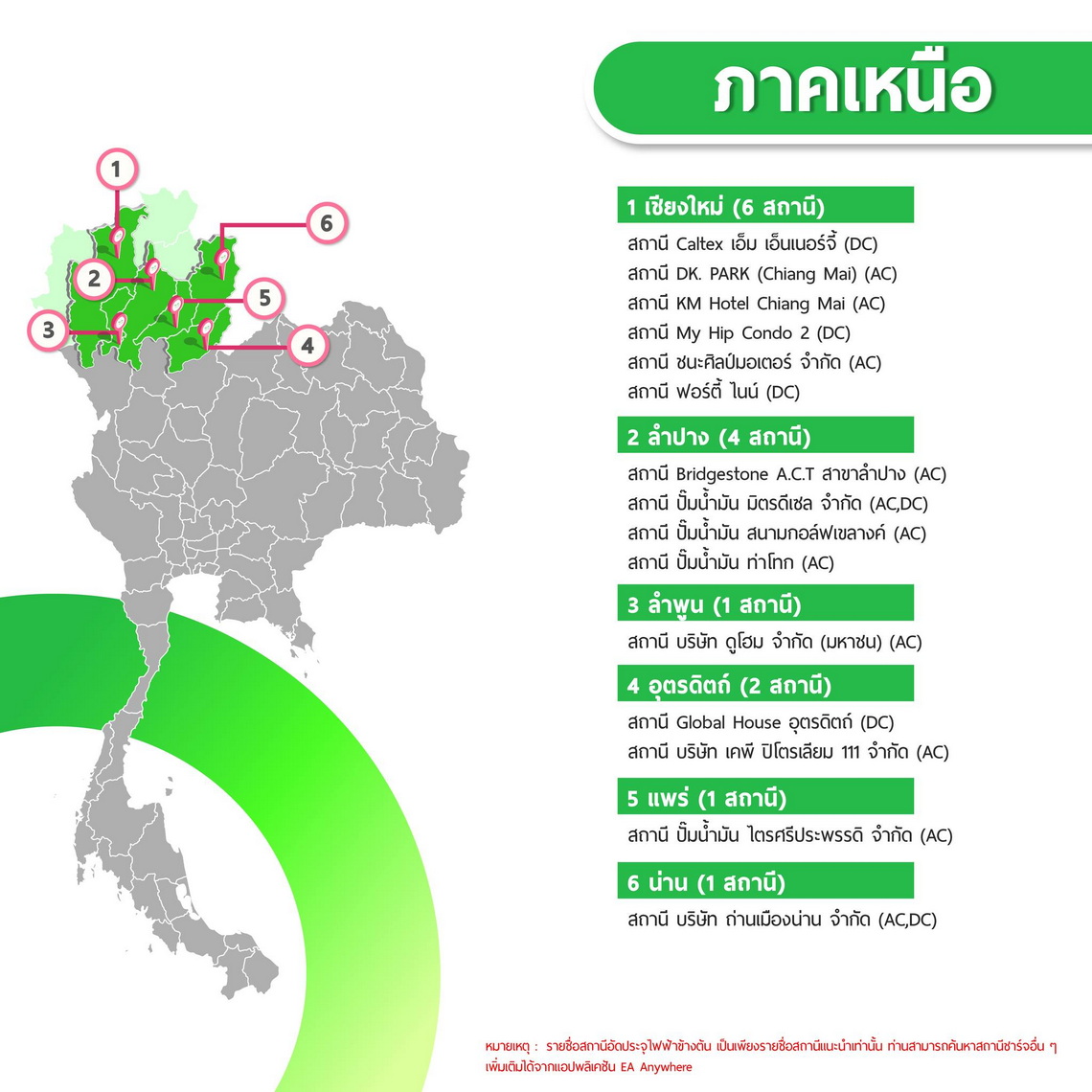 นอกจากนี้ EA Anywhere ยังอัปเดตรายชื่อสถานีชาร์จ EA Anywhere ที่เปิดให้บริการ 24 ชั่วโมง เพิ่มเติม ได้แก่