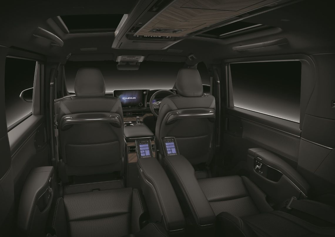ภายในห้องโดยสารตอนหลังออกแบบเพื่อมอบประสบการณ์การเดินทางสุดพิเศษ ด้วยแรงบันดาลใจจากที่นั่งเครื่องบินโดยสารชั้น First class พร้อมผนังกั้นเพื่อความเป็นส่วนตัว กระจกปรับความเข้มแสงอัจฉริยะ หน้าจอขนาดใหญ่ 48 นิ้ว ระบบเครื่องเสียงชั้นเลิศ “Mark Levinson Reference 3D Surround Sound System” ช่องเก็บของ ช่องแช่เครื่องดื่ม จุดชาร์จไฟ รองรับทุกความต้องการ เบาะนั่งที่ให้ผิวสัมผัสนุ่มนวล พร้อมระบบควบคุมความร้อน / เย็นของเบาะนั่ง ปรับเอนนอนได้ในองศาที่มากขึ้นกว่าเดิม โอบล้อมสรีระ ให้การซัพพอร์ตได้อย่างเหมาะสม ลดแรงสั่นสะเทือนที่มาจากภายนอกรถ พร้อม “Relaxation Function” ระบบนวดที่ทำให้ทุกการเดินทางผ่อนคลาย
