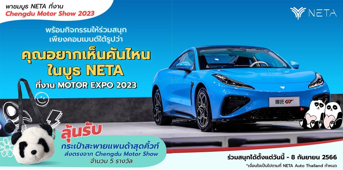Neta Auto Thailand พาชมบูธ NETA ในงาน เฉิงตู มอเตอร์โชว์ (Chengdu Motor Show 2023) พร้อมจัดกิจกรรม “เพียงคอมเมนต์ว่าอยากเห็นรถคันไหนในบูธ NETA ที่งาน Thailand International Motor Expo 2023”