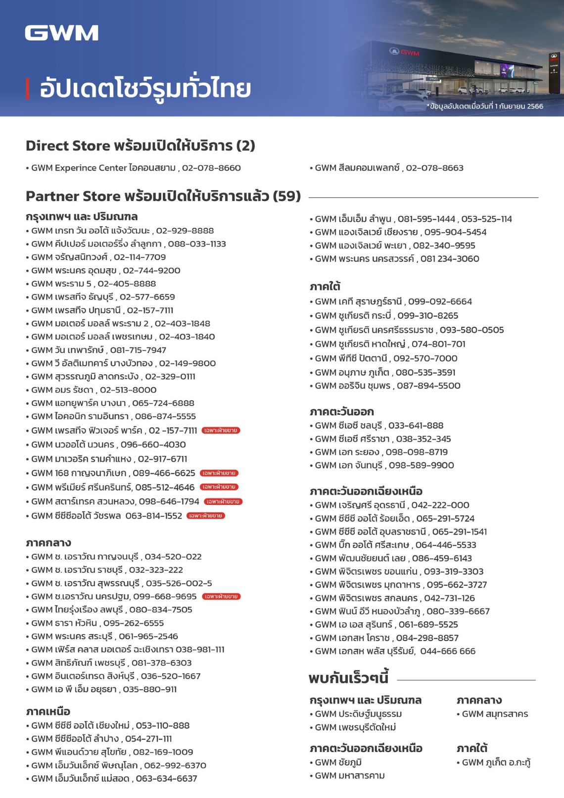 ดูรายละเอียดเพิ่มเติม ได้ที่ https://www.gwm.co.th/showroom.html