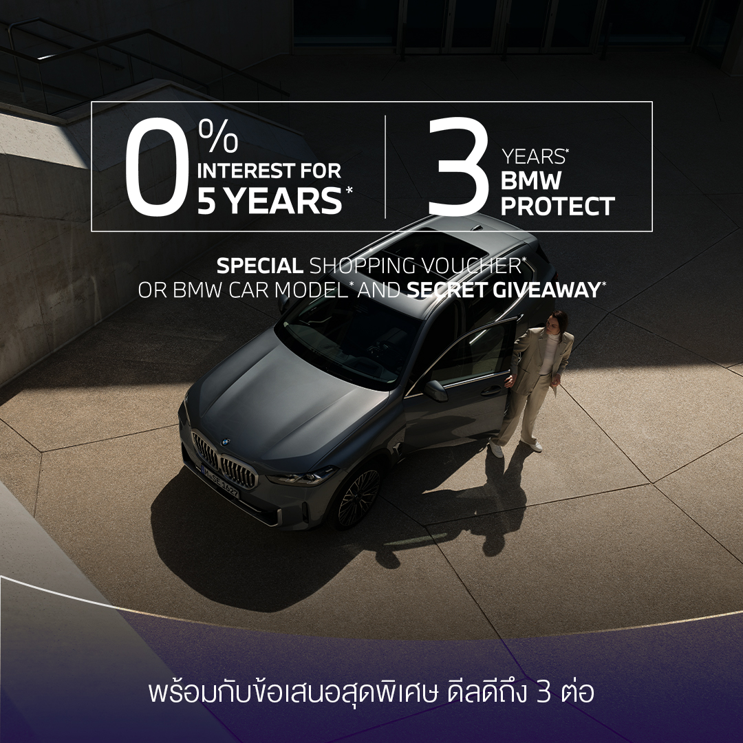งานนี้ BMW ยกทัพรุ่นใหม่ล่าสุดทั้ง 5 รุ่น THE NEW M760e xDrive , THE NEW X5 , THE NEW X6, THE iX3 M Sport Inspiring และ THE NEW M3 CS พร้อมด้วย BMW อีกมากมายหลายรุ่น มาพร้อมข้อเสนอพิเศษ Financial Deal 3 ต่อ