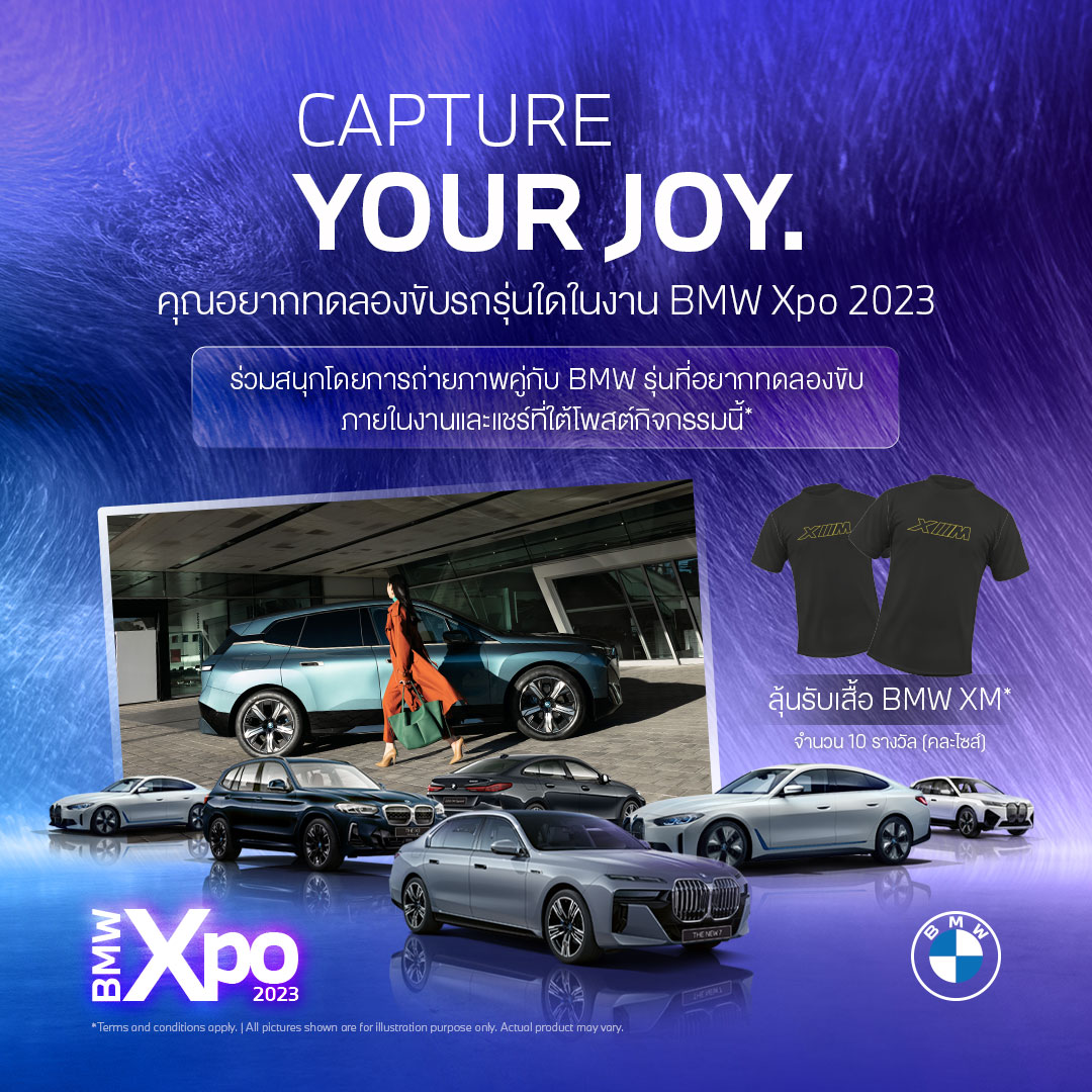 ในงาน BMW Xpo 2023 ยังมีกิจกรรม THE POWER OF JOY. THE POWER OF DEAL. ให้คนรัก BMW ร่วมสนุกเพื่อลุ้นรับเสื้อ BMW XM จำนวน 10 รางวัล