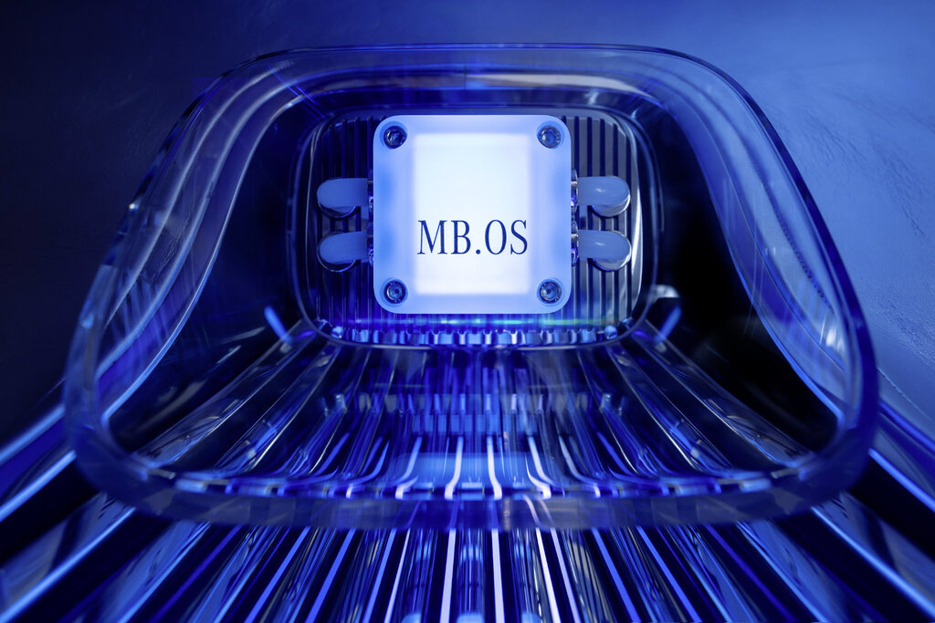 ระบบปฏิบัติการเมอร์เซเดส-เบนซ์ใหม่ (MB.OS) ใช้ซูเปอร์คอมพิวเตอร์และปัญญาประดิษฐ์เพื่ออำนวยความสะดวกในการปรับแต่งส่วนบุคคล ความปลอดภัย ความสะดวกสบาย และการขับขี่อัตโนมัติในระดับใหม่ ผ่านหน้าจอ MBUX Superscreen ขนาดใหญ่ที่ผสมผสานกราฟิกเรียลไทม์ขั้นสูง ทำงานคู่กับระบบปฏิบัติการ MB.OS ซึ่งกลายมาเป็นพระเอกหลักบนแผงคอนโซลรูปทรงแบนตรงที่มีความเรียบง่าย ประกบข้างด้วยช่องแอร์กลมขนาดใหญ่สองข้างซึ่งถูกนำแผงควบคุมใส่ไว้ตรงกลาง
