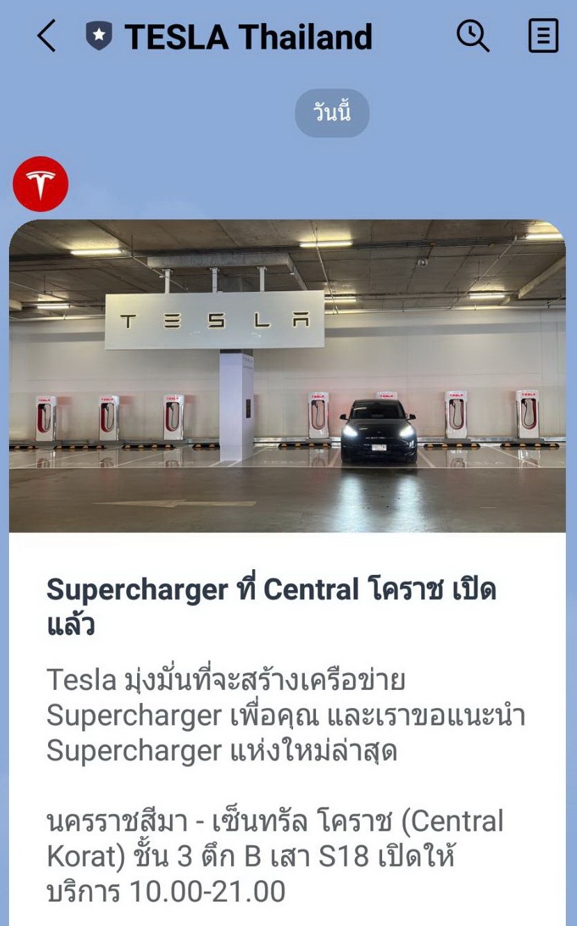 สถานี Tesla Supercharger แห่งแรกของภาคอีสานเปิดแล้ว ที่ Central Korat จังหวัดนครราชสีมา นับเป็นสถานีแห่งที่ 10 ในประเทศไทย พิกัด ชั้น 3 ตึก B เสา S18 จำนวน 8 หัวชาร์จ เปิดให้บริการ 10.00-21.00 น.