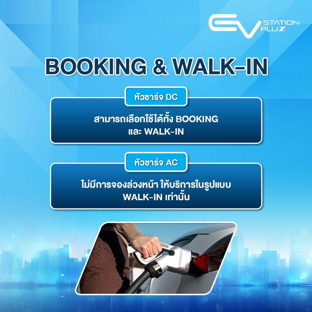 การจองชาร์จล่วงหน้า (booking) หรือ Walk-in