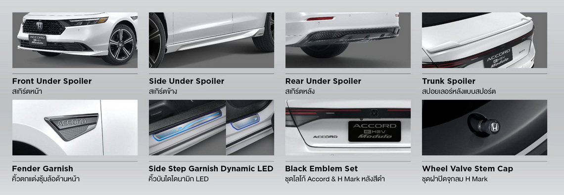 หรือดูรายละเอียดชุดอุปกรณ์ตกแต่งเพิ่มเติมได้ที่ https://hondaaccess.co.th/products/accordehev