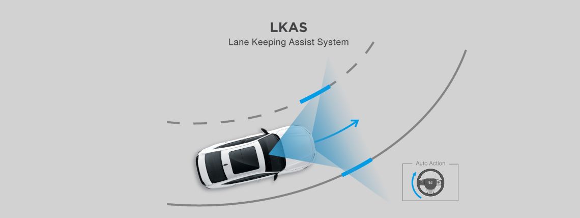 ระบบจะใช้กล้องด้านหน้าในการตรวจจับเส้นแบ่งช่องทางจราจร หากพบว่ารถอยู่ในสภาวะเบี่ยงออกนอกช่องทางโดยไม่ตั้งใจ ระบบจะส่งสัญญาณเตือนที่หน้าจอแสดงข้อมูลพร้อมการสั่นเตือนของพวงมาลัย และในกรณีที่รถเริ่มเบี่ยงออกนอกช่องทางมากยิ่งขึ้น ระบบจะช่วยหน่วงพวงมาลัย เพื่อให้รถกลับเข้าสู่ช่องทางปกติ ช่วยลดความเสี่ยงที่รถจะออกนอกช่องทางจราจร