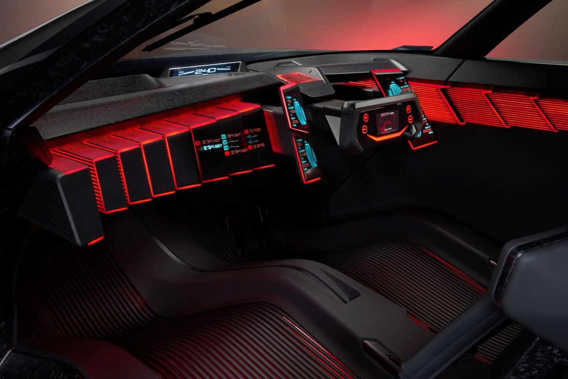 ห้องโดยสารจะปรับแสงบรรยากาศเป็นสีแดง และสร้างพื้นขับขี่ที่ใช้งานง่ายซึ่งโฟกัสไปที่คนขับเพื่อทำให้เกิดสมาธิ หน้าจอแสดงผลสี่จอรอบตัวและรอบพวงมาลัยจะแสดงลมยาง ความดันอากาศ อุณหภูมิของจานเบรก การกระจายกำลัง และข้อมูลอื่นๆ ที่จำเป็นต่อการแข่งรถ