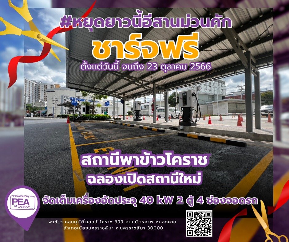 นายศุภชัย เอกอุ่น ผู้ว่าการการไฟฟ้าส่วนภูมิภาค (PEA) พร้อมคณะผู้บริหาร ร่วมเปิดการใช้งานสถานีบริการชาร์จยานยนต์ไฟฟ้า PEA VOLTA EV Charging Station แห่งใหม่ อย่างเป็นทางการ ณ การไฟฟ้าส่วนภูมิภาคสาขาเมืองนครราชสีมา เมื่อวันที่ 14 พฤศจิกายน 2566