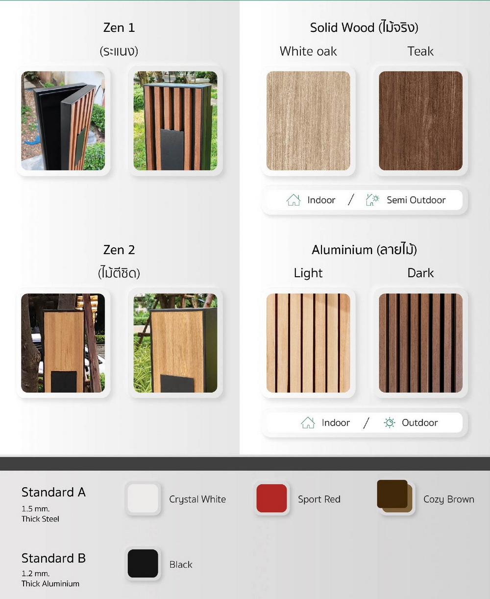“ราคารุ่นสแตนดาร์ด ประมาณ 4,300 บาท รุ่นที่ดีไซน์เป็นเสาราคาเริ่มต้น 9,990 บาท วัสดุทำจากอลูมิเนียม เป็นลายไม้ เลือกสีได้ มีทั้งเฉดสีอ่อน และสีเข้ม อยากได้ดีไซน์แบบเป็นระแนง หรืออลูมิเนียมกันน้ำ ติดตั้งกลางแจ้งได้เลย วัสดุที่นำมาทำเลือกใช้สเปคดี เคลือบสีหลายชั้น ถ้าโรงรถอยู่ในบ้าน ไม่โดนแดด ไม่โดนฝน เรามีแบบไม้จริงให้เลือก มีทั้งไม้สักและไม้โอ๊ค เป็นไม้จริง เนื้อแข็ง แผ่นไม้หนา 1 นิ้ว ผ่านการอบมาแล้ว”