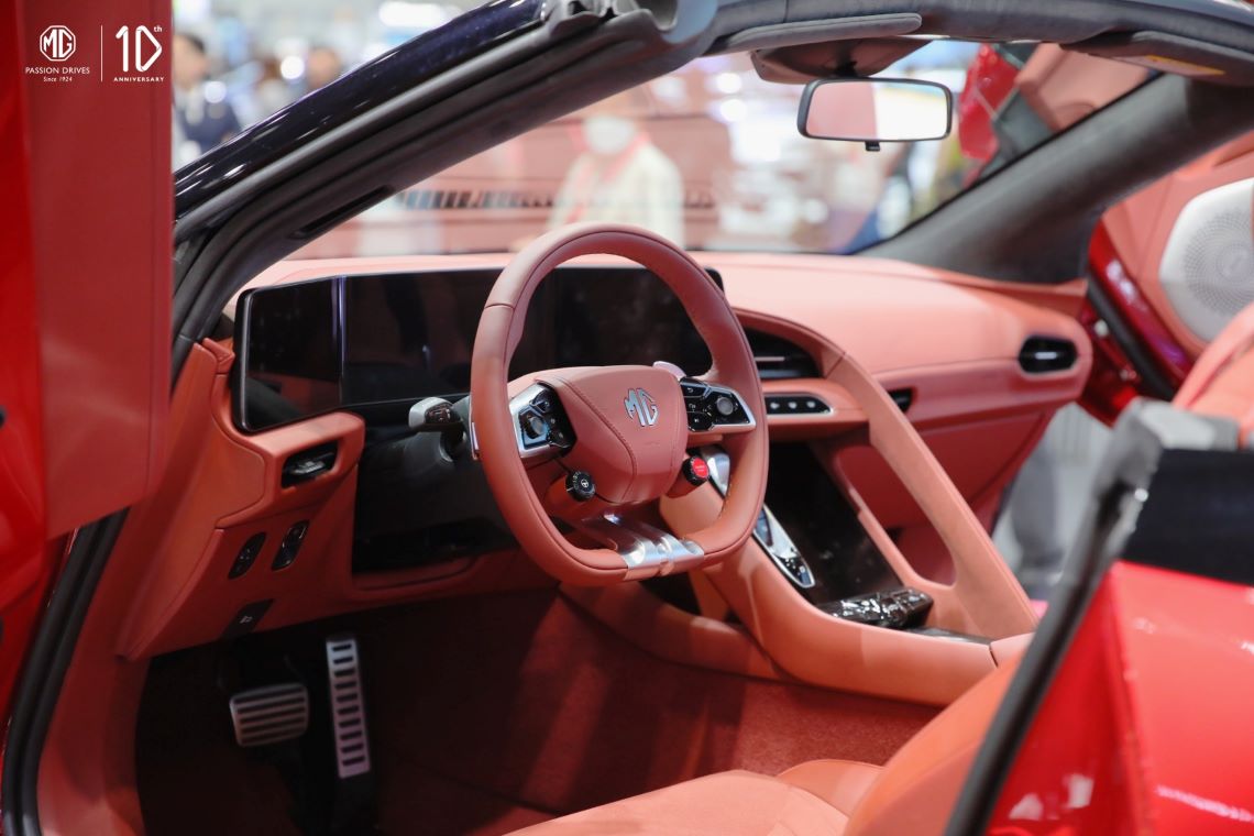 MG CYBERSTER เป็นรถสปอร์ตโรดสเตอร์พลังงานไฟฟ้า 100% แบบเปิดประทุน 2 ที่นั่ง โดดเด่นด้วยประตูปีกนก (Scissor Doors) แบบปุ่มสัมผัสเปิด – ปิด มีหลังคาผ้าแบบซอฟต์ท็อปเพิ่มลุคคลาสสิก ภายในห้องโดยสารให้ลุคสปอร์ตด้วยการใช้สีแดง Wine red ใช้วัสดุคุณภาพระดับพรีเมียม พร้อมระบบการเชื่อมต่อด้วยเทคโนโลยีทันสมัย ให้ความความรู้สึกแห่งการขับขี่รถสปอร์ตสไตล์ Convertible