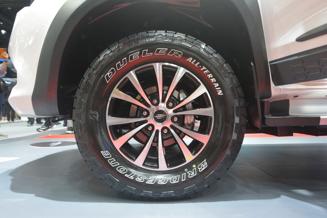 กระจังหน้าคาดแถบโครเมี่ยมแนวนอน ไฟหน้า Projector มีไฟตัดหมอกหน้า กันชนยังมีช่องดักลม ด้านข้างเพิ่มช่องชาร์จตรงซุ้มล้อหน้า ใส่ล้ออัลลอยทูโทนขนาด 17 นิ้ว พร้อมยาง 245/70 R17