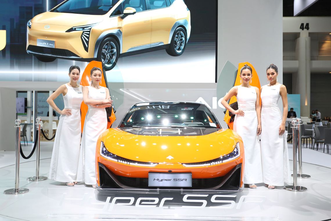 นอกจากนี้ รถยนต์ซูเปอร์คาร์ไฟฟ้าของ GAC AION อย่าง Hyper SSR ยังเป็นรถที่มียอดจองภายในงานถึง 11 คัน จึงเป็นอีกหนึ่งปัจจัยสำคัญในการสร้างภาพลักษณ์ให้กับรถยนต์รุ่นไฮเอนด์ และเป็นการแสดงศักยภาพของรถยนต์ไฟฟ้า ด้วยอัตราเร่ง 0-100 กิโลเมตรต่อชั่วโมง ในเวลาเพียง 1.9 วินาที มอเตอร์ไฟฟ้ามีกำลังรวมสูงสุดถึง 1,225 แรงม้า ประตูปีกแบบปีกผีเสื้อ เปิดปิดด้วยระบบไฟฟ้าแบบอัตโนมัติ ภายนอกทำจากวัสดุคาร์บอนไฟเบอร์ 100% รถรุ่นนี้ประสบความสำเร็จในการดึงดูดความสนใจจากแฟนๆ รถยนต์และผู้เชี่ยวชาญอย่างมาก