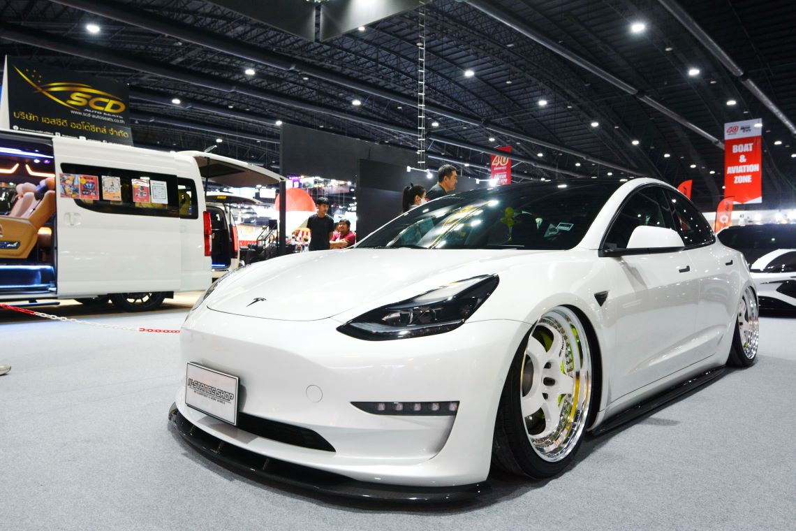 ในงานมอเตอร์ เอ็กซโป ครั้งล่าสุด เราจึงได้เห็น เทสลา ถูกจับมาใส่สตรัท เปลี่ยนล้อใหม่ ใส่ยางเส้นบางๆ เซ็ทช่วงล่างโหลดเตี้ยติดดินแบบ “แบนๆ” ใส่การ์ดอะลูมิเนียมกันกระแทกแบตเตอรี่ใต้ท้องรถ ฯลฯ เตี้ยสะใจไปอีกแบบ
