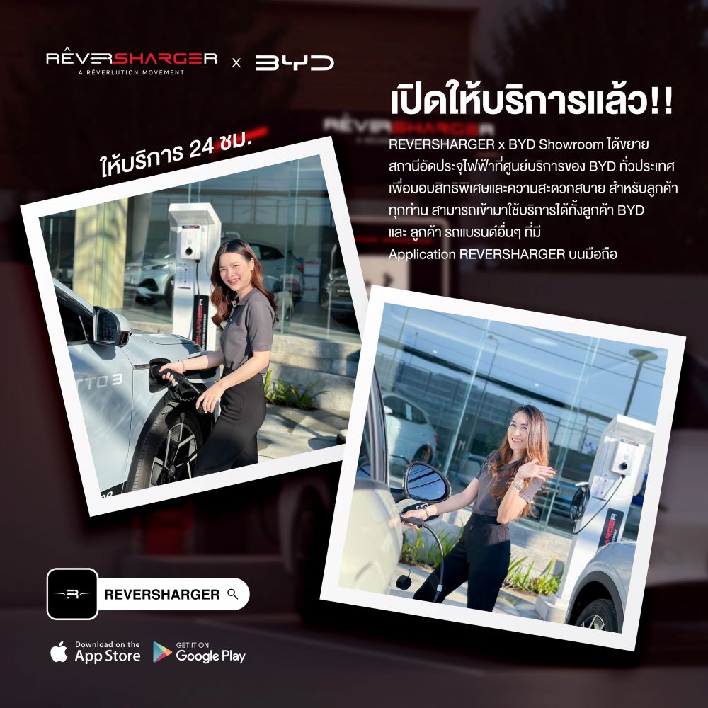 REVERSHARGER มีแผนขยายสถานีชาร์จ EV ตามศูนย์บริการของ BYD ทั่วประเทศ ให้บริการทั้งลูกค้า BYD และลูกค้ารถแบรนด์อื่นๆที่ใช้ Application REVERSHARGER บนมือถือ ก่อนหน้านี้เปิดให้บริการไปแล้ว 5 สาขา ทั้งในกรุงเทพและต่างจังหวัด เช่น พัทยา ระยอง พิกัดแต่ละสถานีมีดังนี้