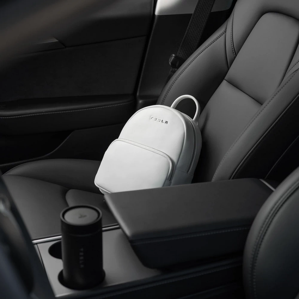 Mega [mini] Pack ได้รับแรงบันดาลใจจากการตกแต่งภายในแบบวีแก้นของรถเทสลาและการใช้สีแบบขาวดำ คอลเลกชันนี้ทำจากหนังวีแก้นที่มีความทนทาน พร้อมโลโก้ Tesla ที่ขึ้นรูปแบบปรับแต่งเองและตกแต่งด้วยฮาร์ดแวร์โลหะ โดดเด่นด้วยช่องใส่ของอเนกประสงค์หลายช่อง รวมถึงช่องกระเป๋าด้านนอกที่ซ่อนอยู่ พร้อมหูหิ้วพกพาสะดวกและสายสะพายไหล่ปรับระดับได้