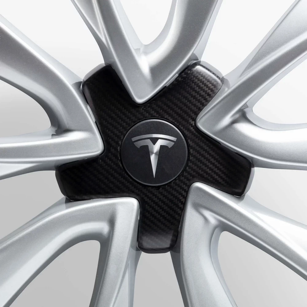 4x ฝาครอบล้อคาร์บอนไฟเบอร์โลโก้เทสล่า