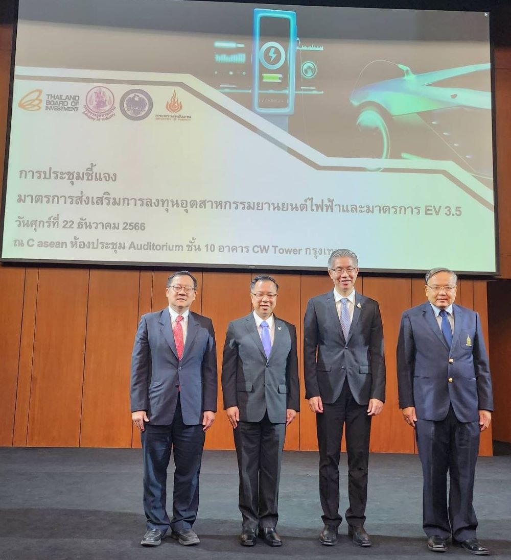 สืบเนื่องจากที่ประชุมคณะรัฐมนตรีเมื่อวันที่ 19 ธันวาคม 2566 ได้มีมติรับทราบและเห็นชอบตามมติคณะกรรมการนโยบายยานยนต์ไฟฟ้าแห่งชาติ ครั้งที่ 1/2566 เมื่อวันที่ 1 พฤศจิกายน 2566 อันมีสาระสำคัญในเรื่อง มาตรการสนับสนุนการใช้ยานยนต์ไฟฟ้าระยะที่ 2 หรือ EV3.5 สำนักงานคณะกรรมการส่งเสริมการลงทุนในฐานะฝ่ายเลขานุการของคณะกรรมการนโยบายยานยนต์ไฟฟ้าแห่งชาติ จึงได้จัดการประชุมชี้แจงรายละเอียดและเงื่อนไขของมาตรการ EV3.5 ซึ่งเป็นมาตรการสร้างตลาดยานยนต์ไฟฟ้าในประเทศ ด้วยการให้สิทธิประโยชน์ด้านภาษีและเงินอุดหนุนกับรถยนต์นั่งไฟฟ้า รถกระบะไฟฟ้า และรถจักรยานยนต์ไฟฟ้า ที่เข้าร่วมโครงการ