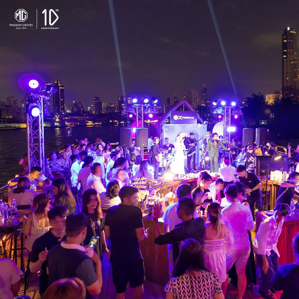 เอ็มจีจัดกิจกรรม MG XPERIENCE ภายใต้คอนเซ็ปต์ RIVERINE RHAPSODY พาลูกค้าและผู้ที่สนใจกว่า 200 คน เปิดประสบการณ์ไปกับแบรนด์ เอ็มจี ด้วยการดินเนอร์ริมน้ำ และล่องเรือชมความงามยามค่ำคืนของแม่น้ำเจ้าพระยา พร้อมรับชมมินิคอนเสิร์ตของ 2 ศิลปินคุณภาพจากเวที THE VOICE อย่าง “เพียว เอกพันธ์” และ “ข้าวฟ่าง กัลป์ธีรา” แบบเอ็กซ์คลูซีฟ ก่อนปิดเวทีด้วยการแสดงแดร็กควีนที่ดีไซน์มาเพื่องานนี้โดยเฉพาะ