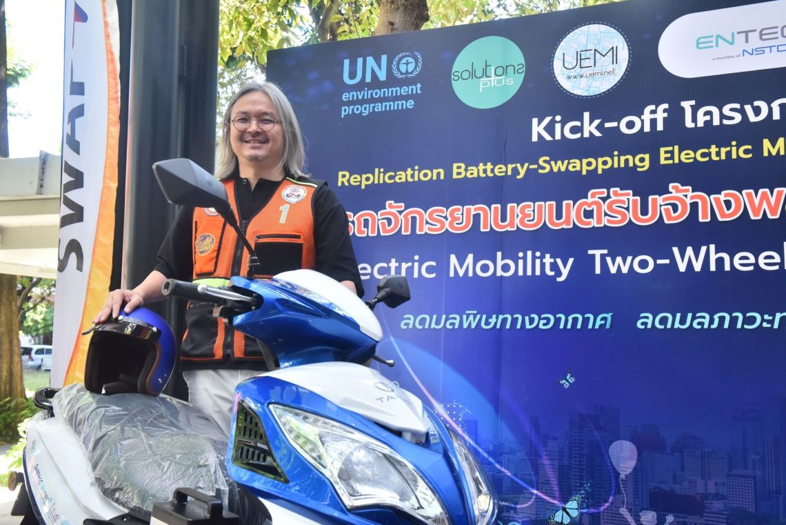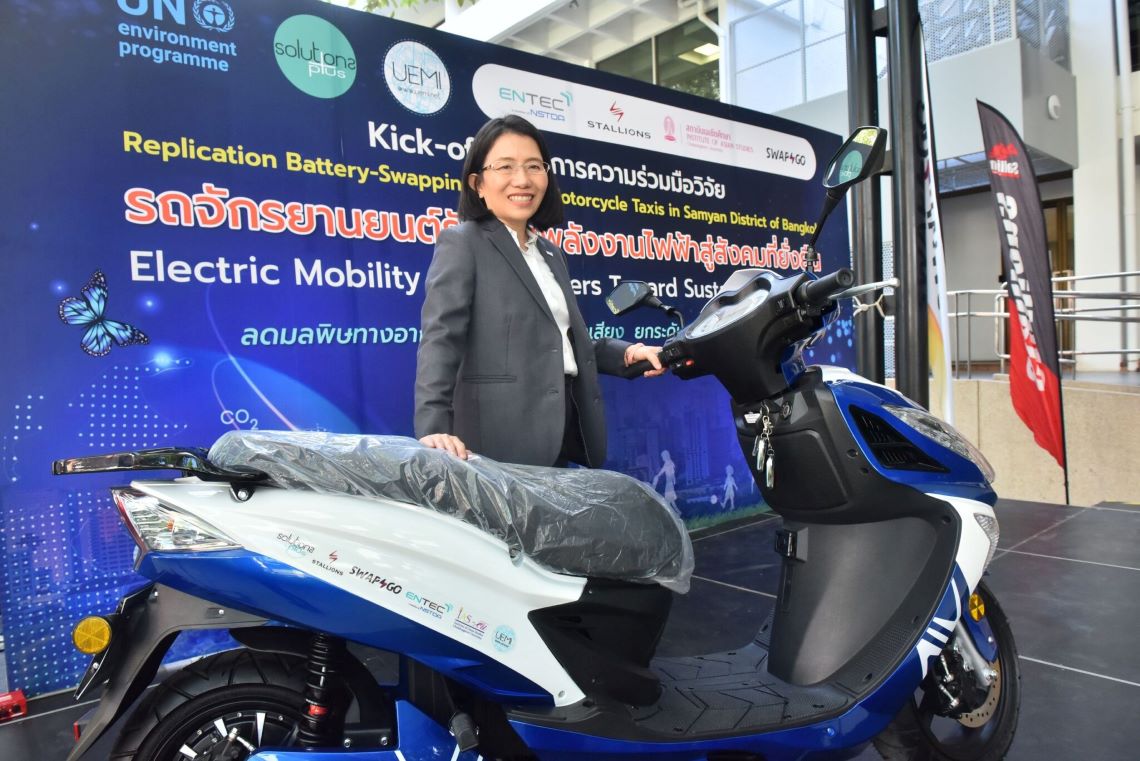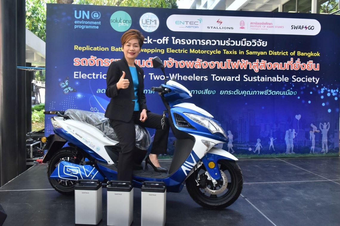 ดร.สุมิตรา จรสโรจน์กุล ผู้อำนวยการศูนย์เทคโนโลยีพลังงานแห่งชาติ (เอ็นเทค) กล่าวว่า สถานการณ์วิกฤตมลภาวะทางอากาศโดยเฉพาะฝุ่นละอองขนาดเล็ก PM2.5 และความแปรปรวนของภูมิอากาศจากปัญหาโลกร้อน สำนักงานพัฒนาวิทยาศาสตร์และเทคโนโลยีแห่งชาติ (สวทช.) โดยศูนย์เทคโนโลยีพลังงานแห่งชาติ (เอ็นเทค) ภายใต้การสนับสนุนจากกองทุน SOLUTIONSPlus (https://solutionsplus.eu/) ผ่านหน่วยงาน Urban Electric Mobility Initiative (UEMI) ในความร่วมมือกับ สถาบันเอเชียศึกษา จุฬาลงกรณ์มหาวิทยาลัย บริษัท เอสทีแอล กรุ๊ป โฮลดิ้ง จำกัด (สตาเลียน) และบริษัท สวอพ แอนด์ โก จำกัด (Swap & Go) ได้ร่วมมือกันส่งเสริมให้เกิดการขยายตัวของรถจักรยานยนต์ไฟฟ้าสู่กลุ่มผู้ขับขี่วินรถจักรยานยนต์รับจ้างสาธารณะในเขตสามย่าน เพื่อเป็นทางเลือกในการปรับเปลี่ยนการใช้รถยนต์ส่วนบุคคลสู่การใช้ระบบขนส่งมวลชนที่มีประสิทธิภาพ