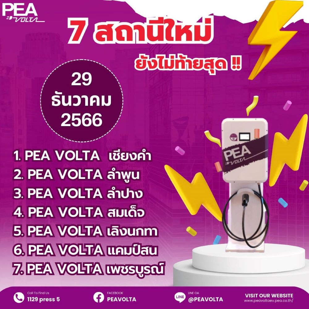 เทศกาลส่งท้ายปีเก่าต้อนรับปีใหม่นี้ PEA VOLTA สรุปยอดขยายสถานีบริการชาร์จรถยนต์ไฟฟ้าทั่วประเทศไทยด้วยจำนวน 330 สถานี โดยในวันที่ 27 ธันวาคม 2566 ได้เปิดสถานีให้บริการชาร์จยนต์ไฟฟ้าขนาด 25 kW ที่พร้อมให้บริการชาร์จ 24 ชั่วโมง จำนวน 24 สถานี มีพิกัดดังนี้