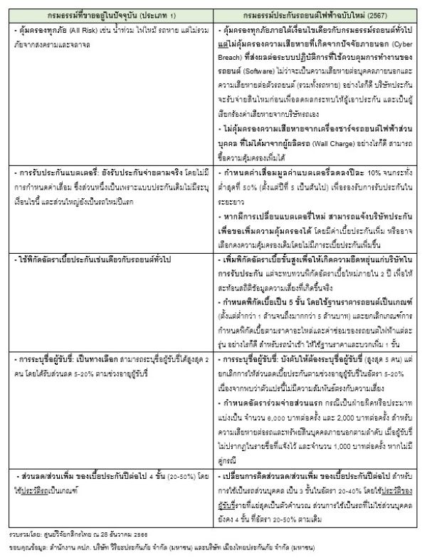 ขณะเดียวกัน ยังคำนึงถึงความเสี่ยงของบริษัทประกันภัย ซึ่งคงมีส่วนช่วยเพิ่มจำนวนบริษัทประกันที่มีความพร้อมในการรับประกันภัยรถยนต์ไฟฟ้า และขยายโอกาสในการมีทางเลือกซื้อผลิตภัณฑ์ประกันภัยของผู้บริโภคที่ตอบโจทย์การใช้งานได้ดีขึ้นในระยะข้างหน้า ดังสรุปสาระสำคัญต่อไปนี้