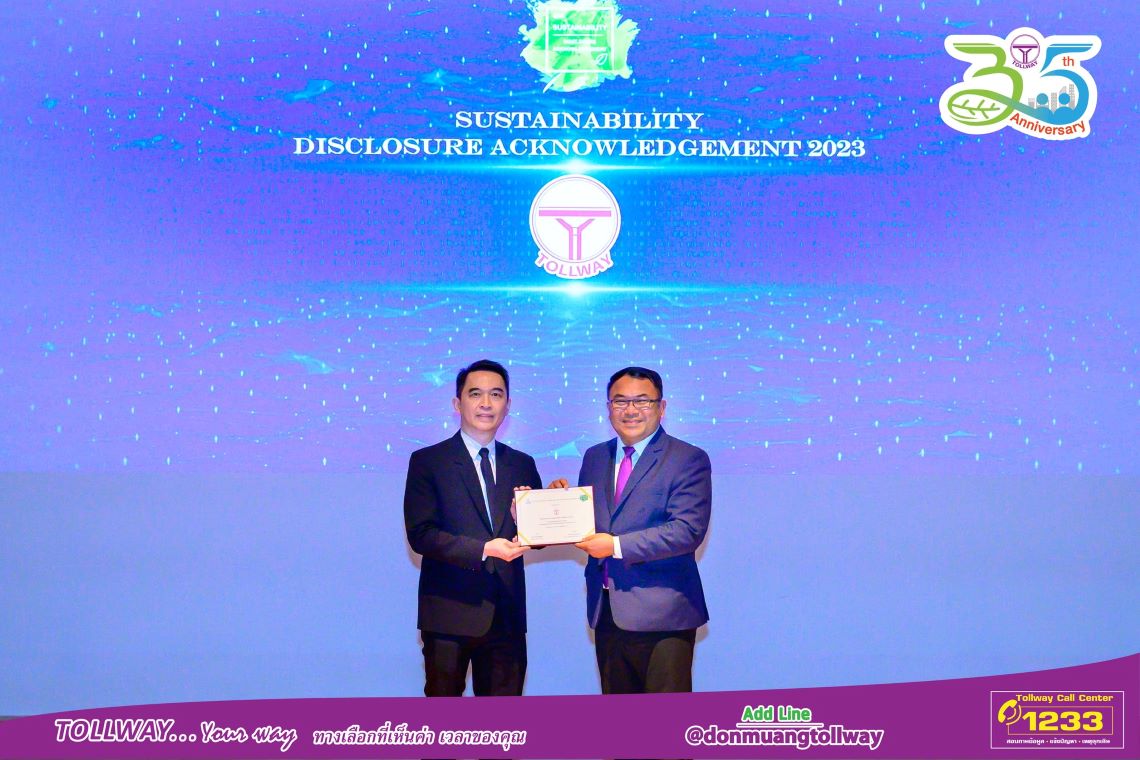 ผลจากการขับเคลื่อนธุรกิจตามแนวทาง ESG อย่างต่อเนื่อง ทำให้บริษัท ทางยกระดับดอนเมือง จำกัด (มหาชน) ได้รับกิตติกรรมประกาศ Sustainability Disclosure Acknowledgement ประจำปี 2566 หรือ รางวัลการเปิดเผยข้อมูลความยั่งยืน โดยรางวัลนี้ได้มอบให้กับบริษัทจดทะเบียนและองค์กรธุรกิจที่เป็นสมาชิกของ SDC ได้ตระหนักและให้ความสำคัญกับการเผยแพร่ข้อมูลการดำเนินงาน ซึ่งครอบคลุมทั้งการดำเนินงานด้านเศรษฐกิจ สังคม สิ่งแวดล้อม หรือประเด็น ESG (Environmental, Social and Governance ซึ่งแสดงถึงความยั่งยืนของธุรกิจอันจะเป็นประโยชน์ต่อกลุ่มผู้มีส่วนได้เสียของกิจการ และการตอบสนองต่อเป้าหมายการพัฒนาที่ยั่งยืน (SDGs)